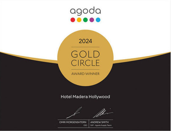 Hotel Madera Hollywood is proud to be highly rated at 9 out of 10 and won the “Traveller Review Awards 2024” presented by Booking.com.